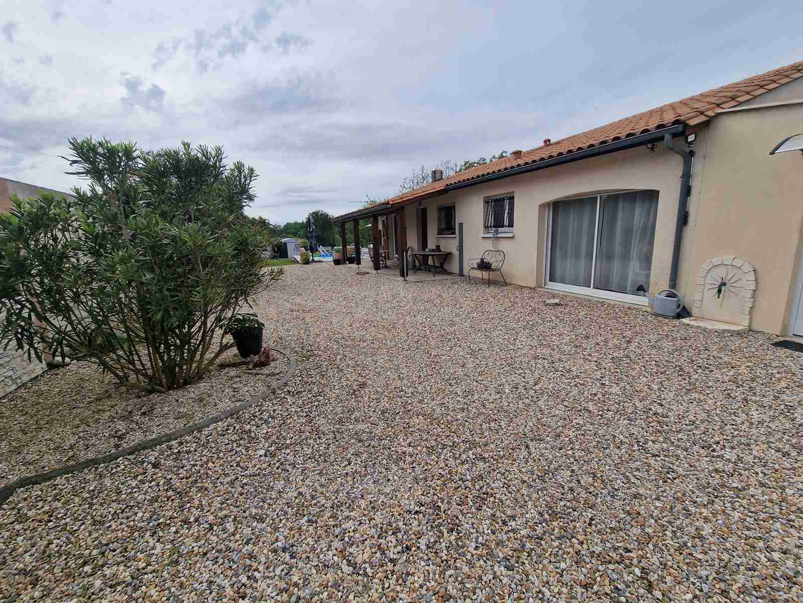 Saint-Palais (33820)Située au calme dans un hameau sur un joli terrain arboré, cette maison de plain pied est composée d'une cuisine équipée ouverte sur un lumineux séjour, de 4 chambres, d'un WC séparé, d'une salle de bains, d'une buanderie, d'un cellier et d'un atelier. Le séjour donne accès à une terrasse équipée d'une pergola bio-climatique. La maison domine un magnifique terrain arboré (fruitiers) sur lequel on trouve un piscine hors-sol semi enterrée et 2 abris de jardin. L'accès à la propriété entièrement cloturée se fait par un portail coulissant automatique. L'assainissement individuel est conforme. Les commodités (écoles, collèges) et les commerces de Saint Ciers sur Gironde sont à proximité immédiate (3-4mn). Contact : 06.19.12.82.39