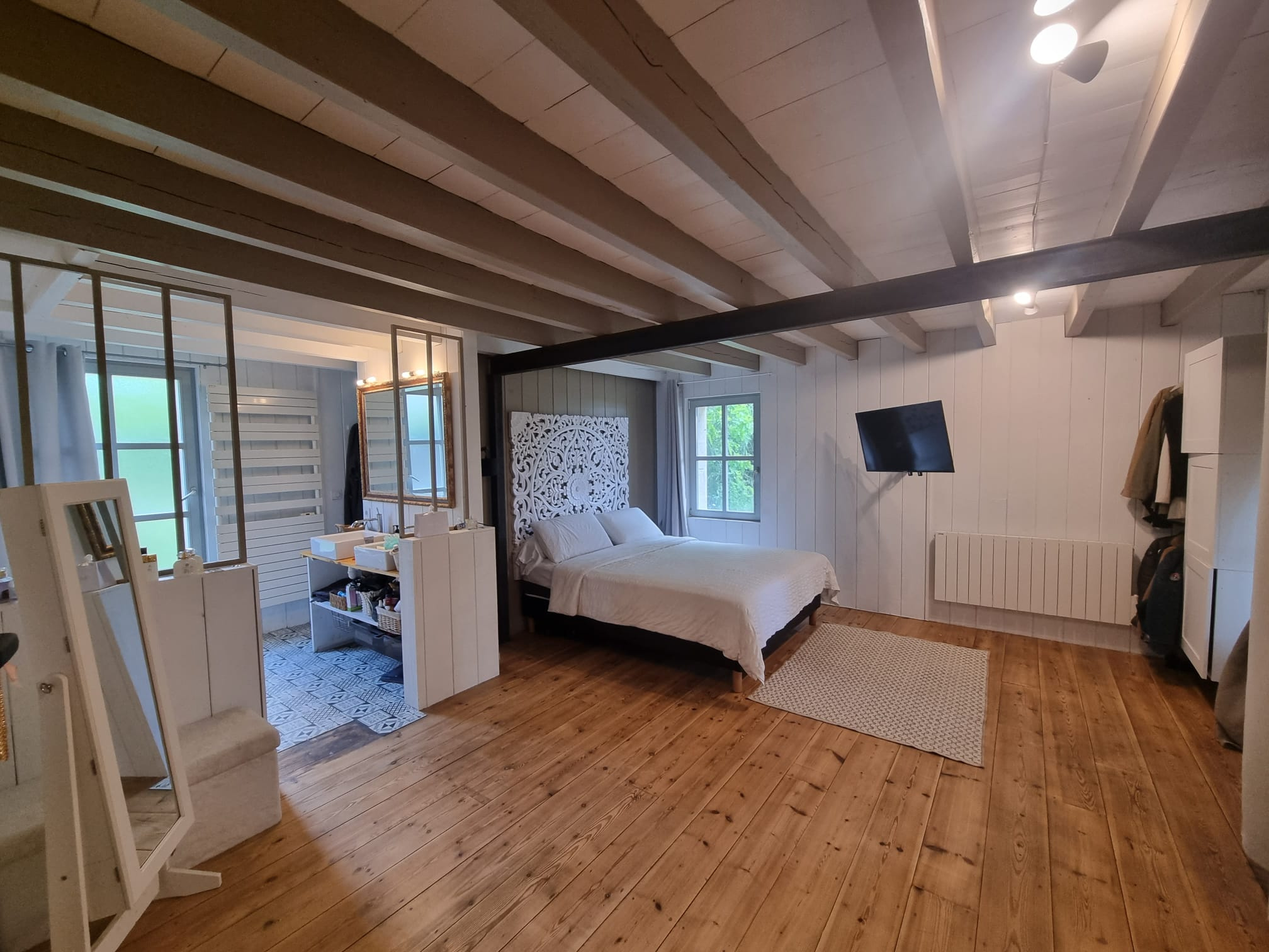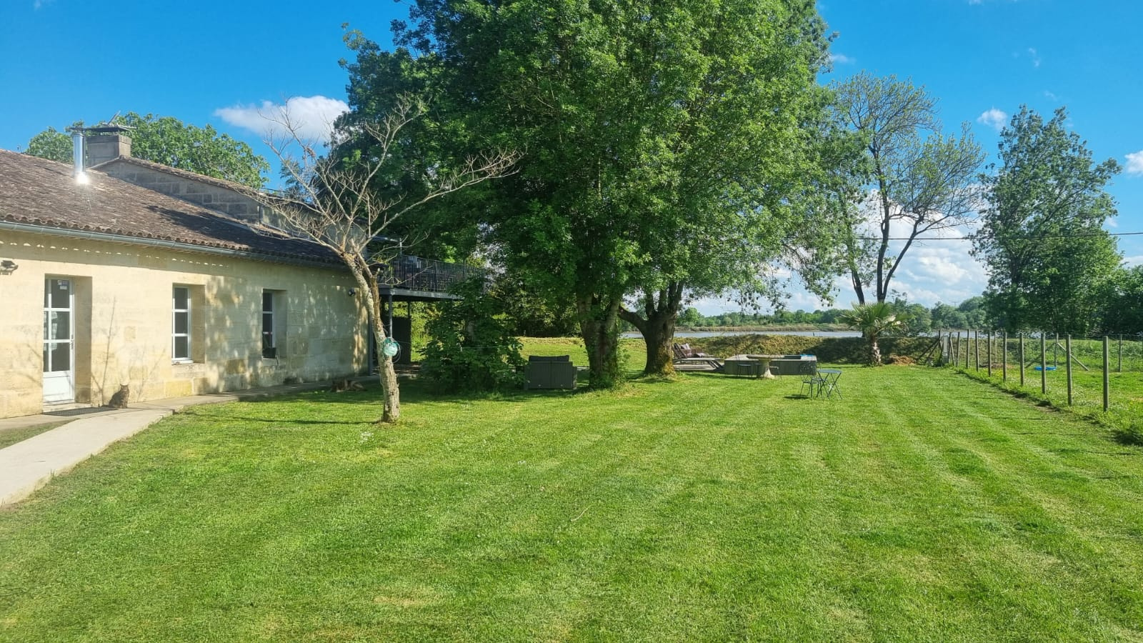 Asques (33240)A 10mn de Saint André de Cubzac, magnifique rénovation pour cette ancienne bergerie en pierre répartie sur 2 niveaux au calme en bordure de Dordogne sur un terrain arboré de 8200m2. En rez de chaussée, un salon (54m2) avec plafond cathédrale, poêle à bois et poutres apparentes, puis 5 luxueuses suites parentales avec bains, douches, balnéo et WC. A l'étage, une salle de jeu, une lumineuse cuisine-séjour (33m2) avec sa cheminée donnant sur une grande terrasse avec son jacuzzi et sa belle vue sur la Dordogne. L'excellent classement énergétique de cette batisse en pierre traduit la bonne qualité de rénovation. Les suites parentales régulièrement louées assurent une excellente rentabilité. La propriété peut être vendue meublée. Climatisation réversible. Une piscine et un terrain de pétanque complètent l'excellent niveau de confort de cette belle propriété. A 10mn de la gare TER et à 30mn de Bordeaux centre. Contact : 06 19 12 82 39